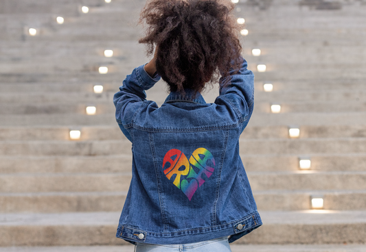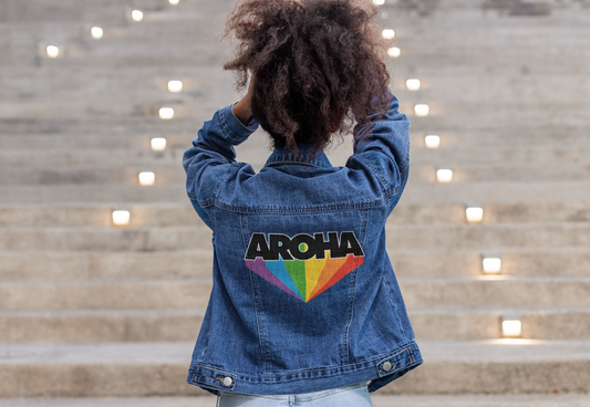 Sold outDenim Jacket - Aroha Rainbow Heart