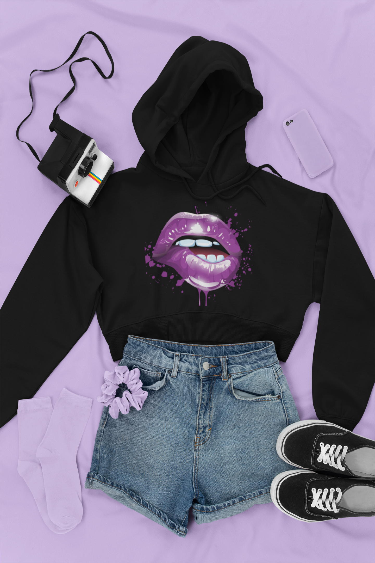 Purple Lip Bite Crop Sweat/Hoodie